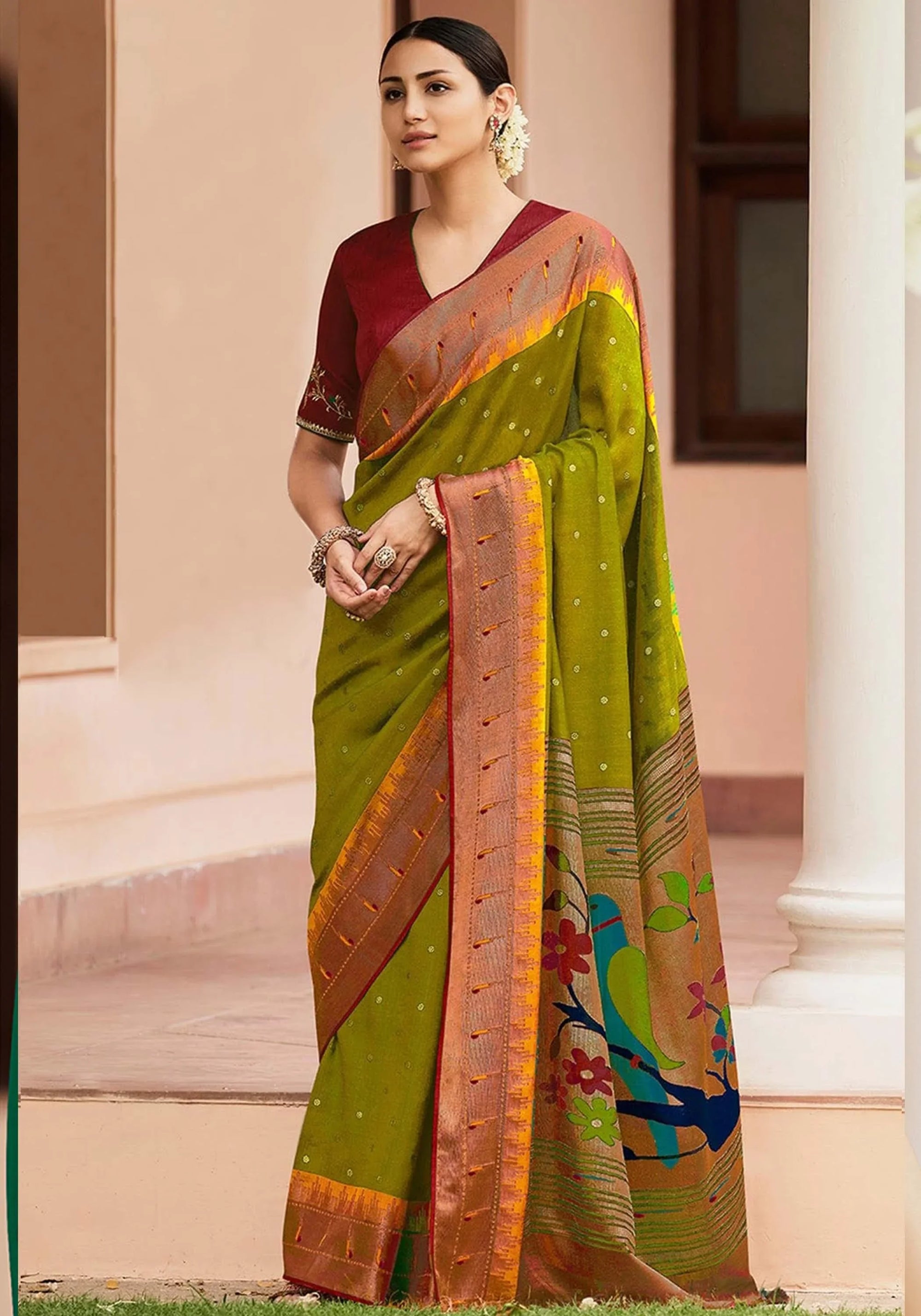 Blouse Piece: Yes, the saree comes with a running blouse piece of 0.8 meter as shown in the image