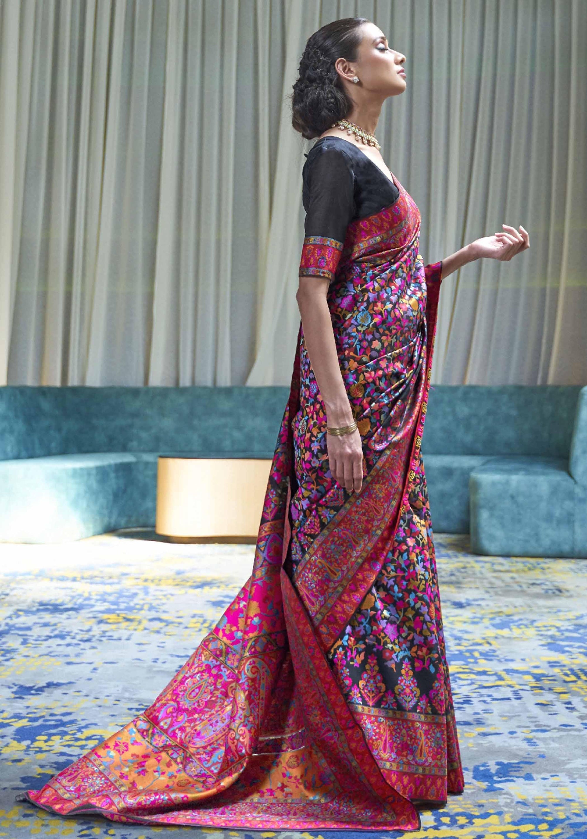 काली बनारसी जामावार बुनी हुई सिल्क साड़ी
