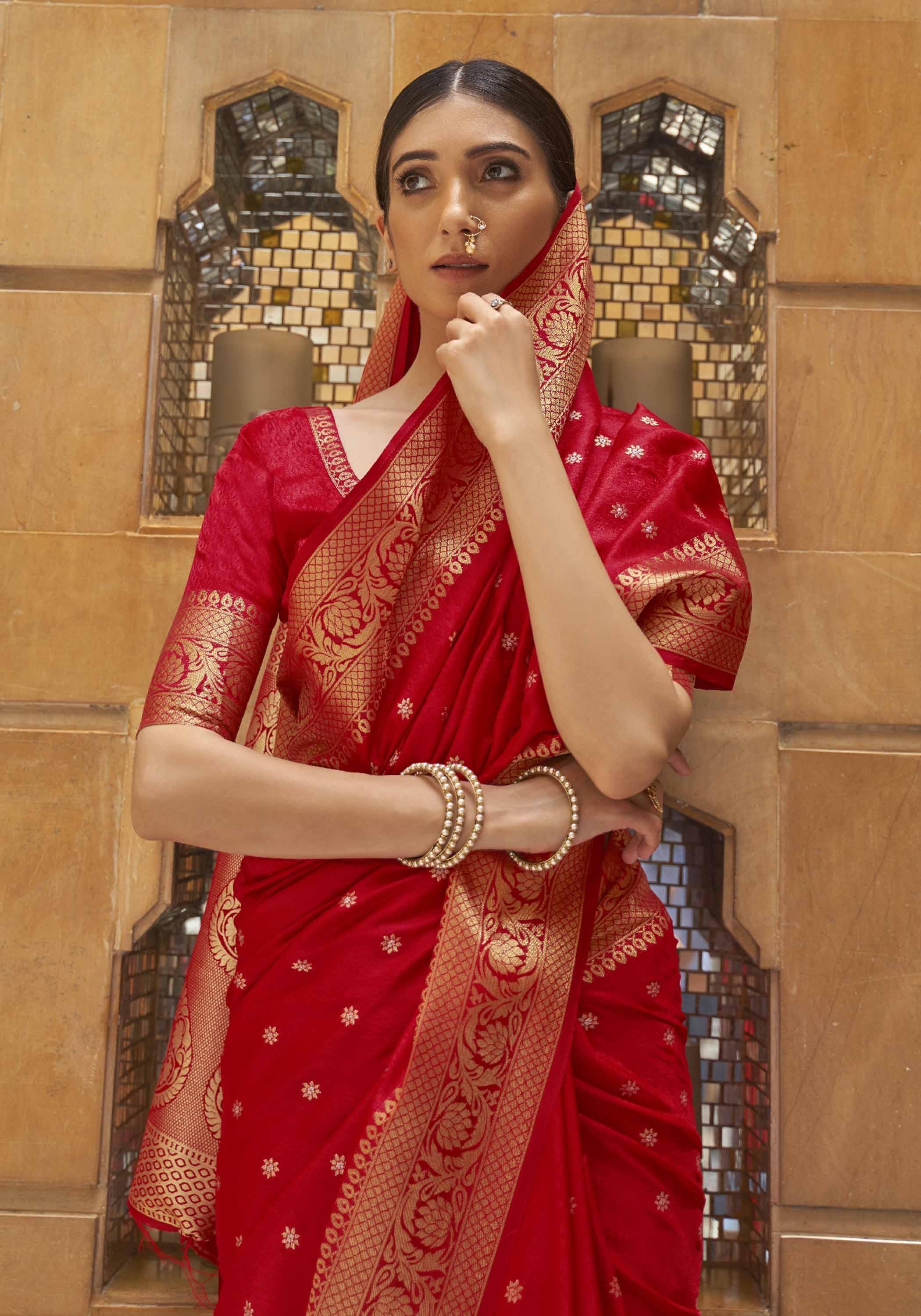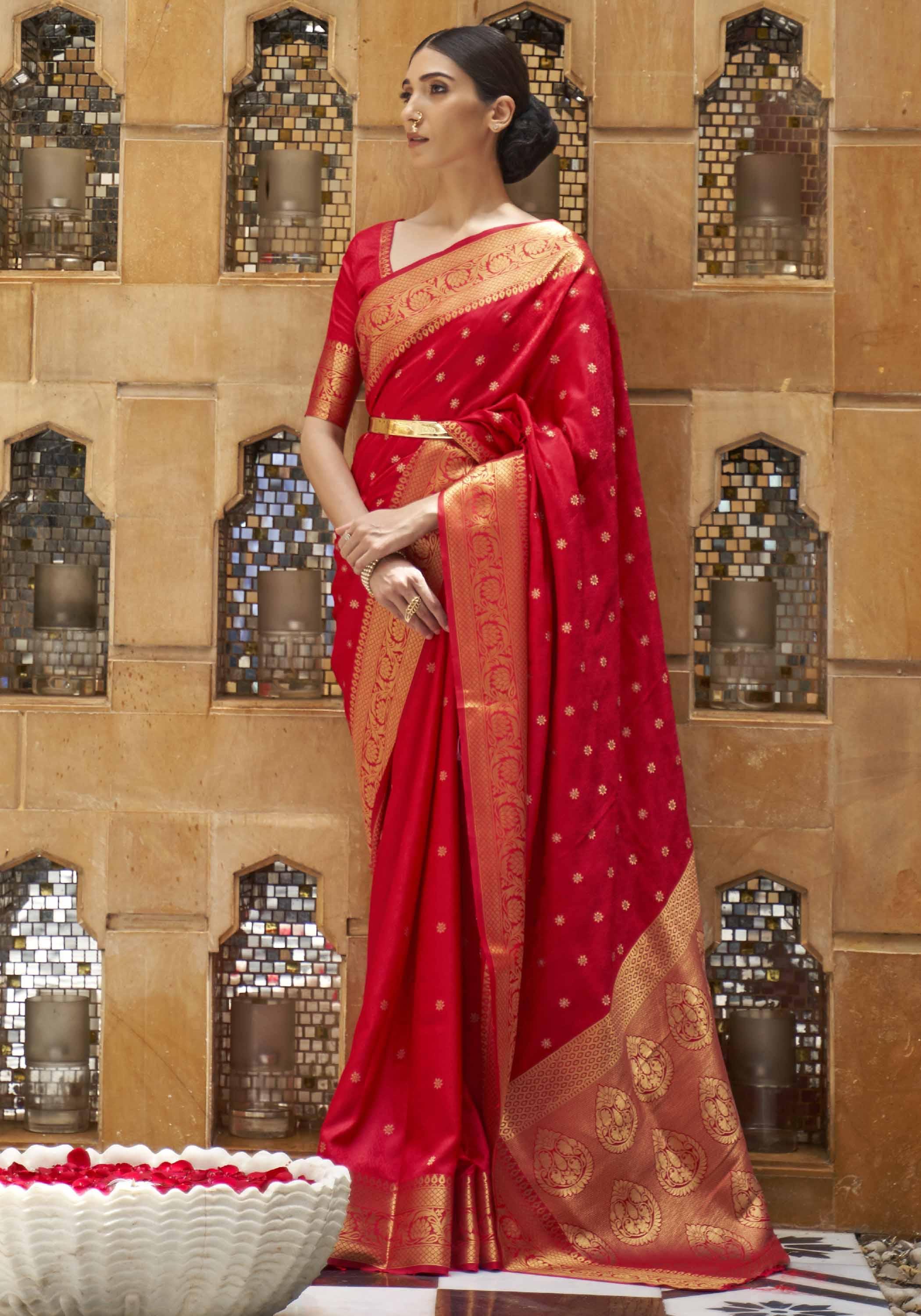 चमकदार लाल ज़री बुनी कांजीवरम सिल्क साड़ी