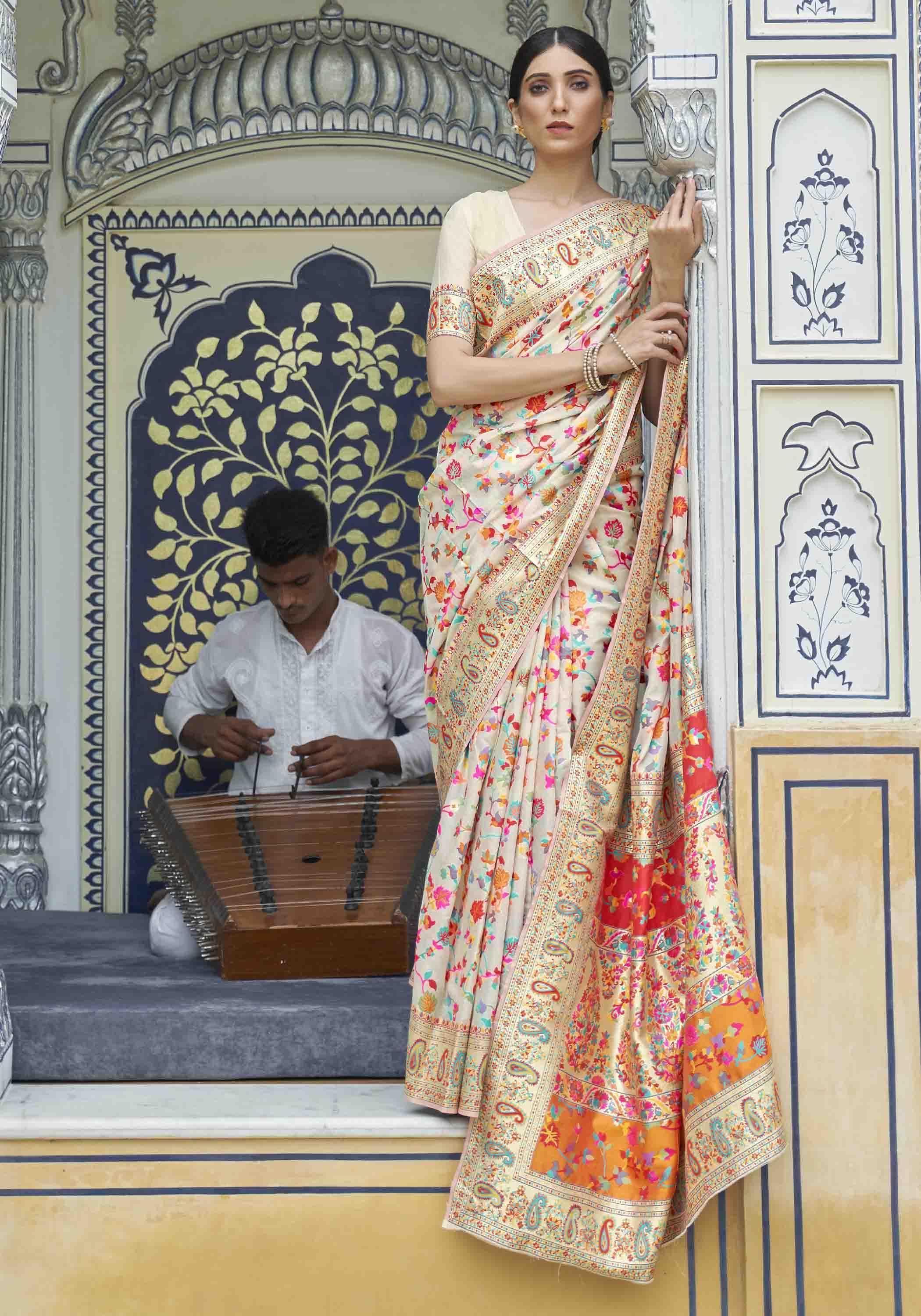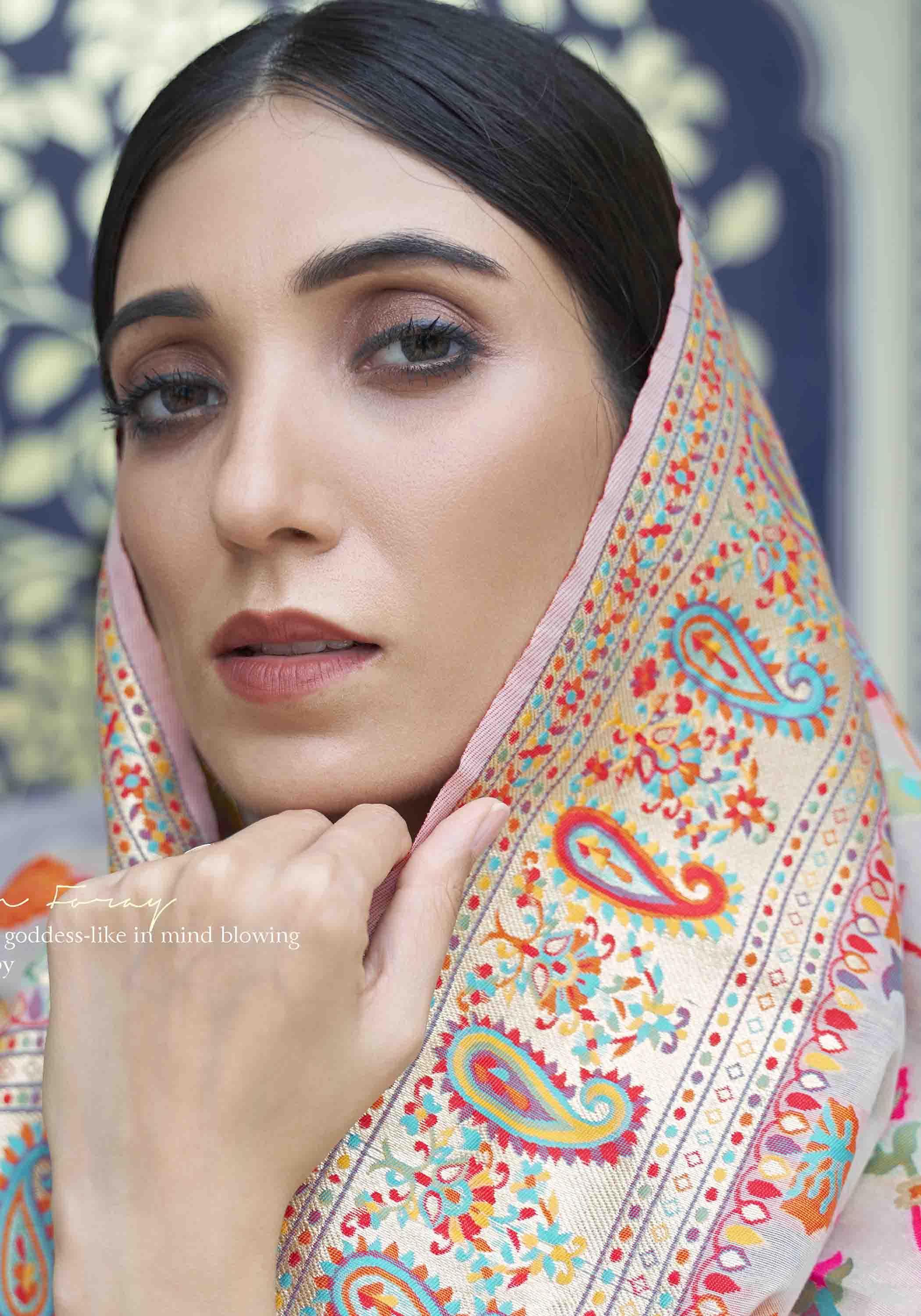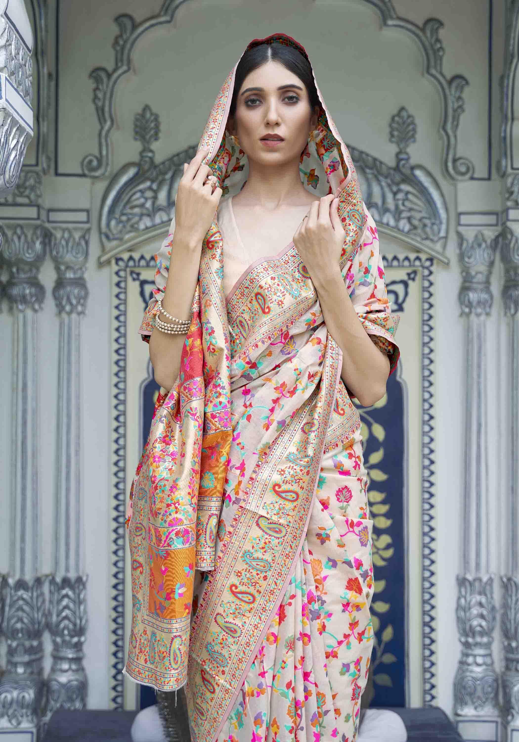 कपड़ा: कश्मीरी (जामावर) बुना हुआ शुद्ध बनारसी रेशम