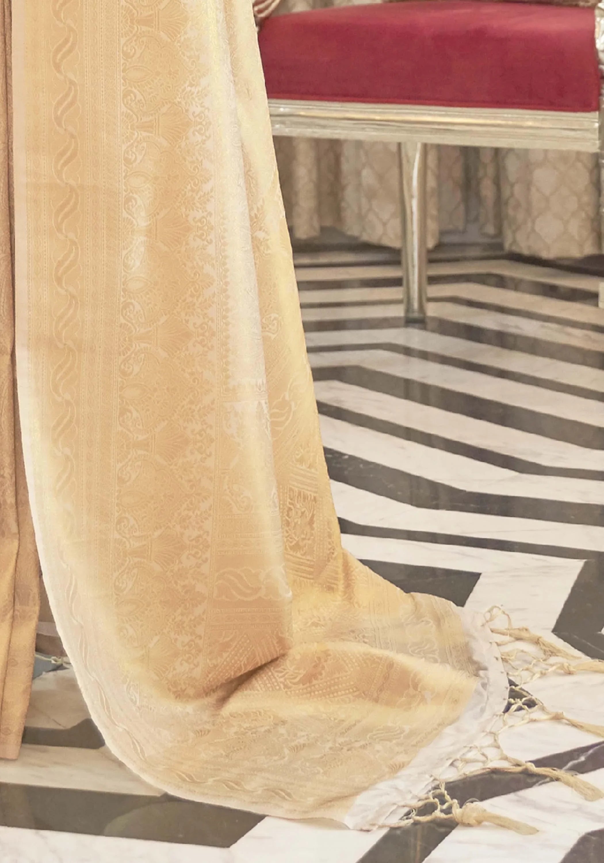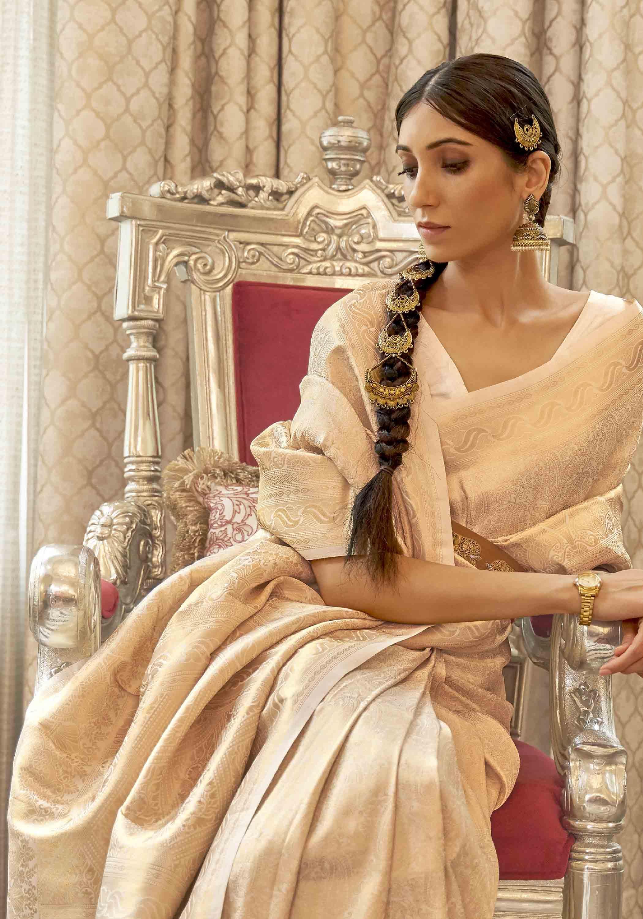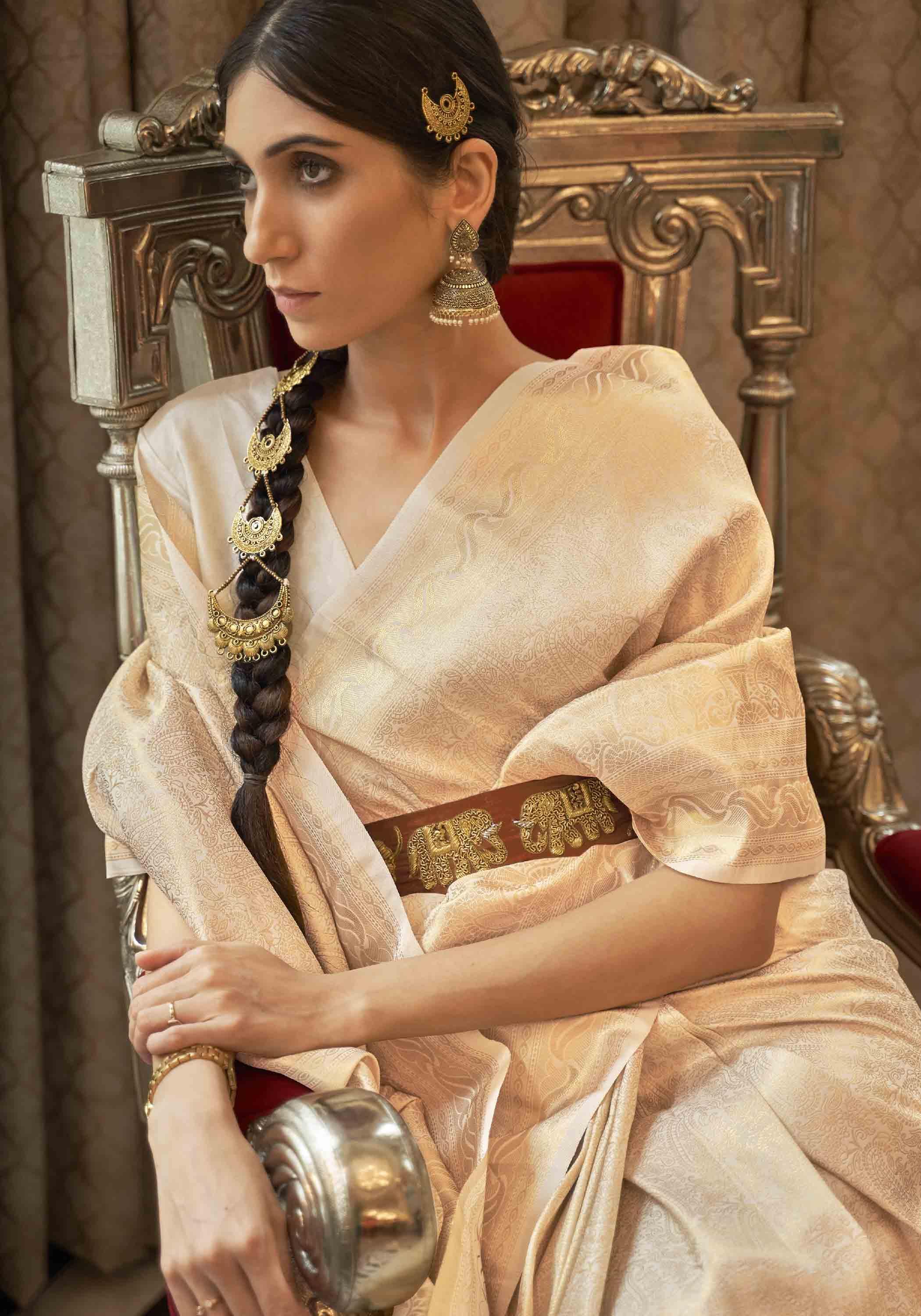 आइवरी सफ़ेद ज़री बुनी कांजीवरम सिल्क साड़ी