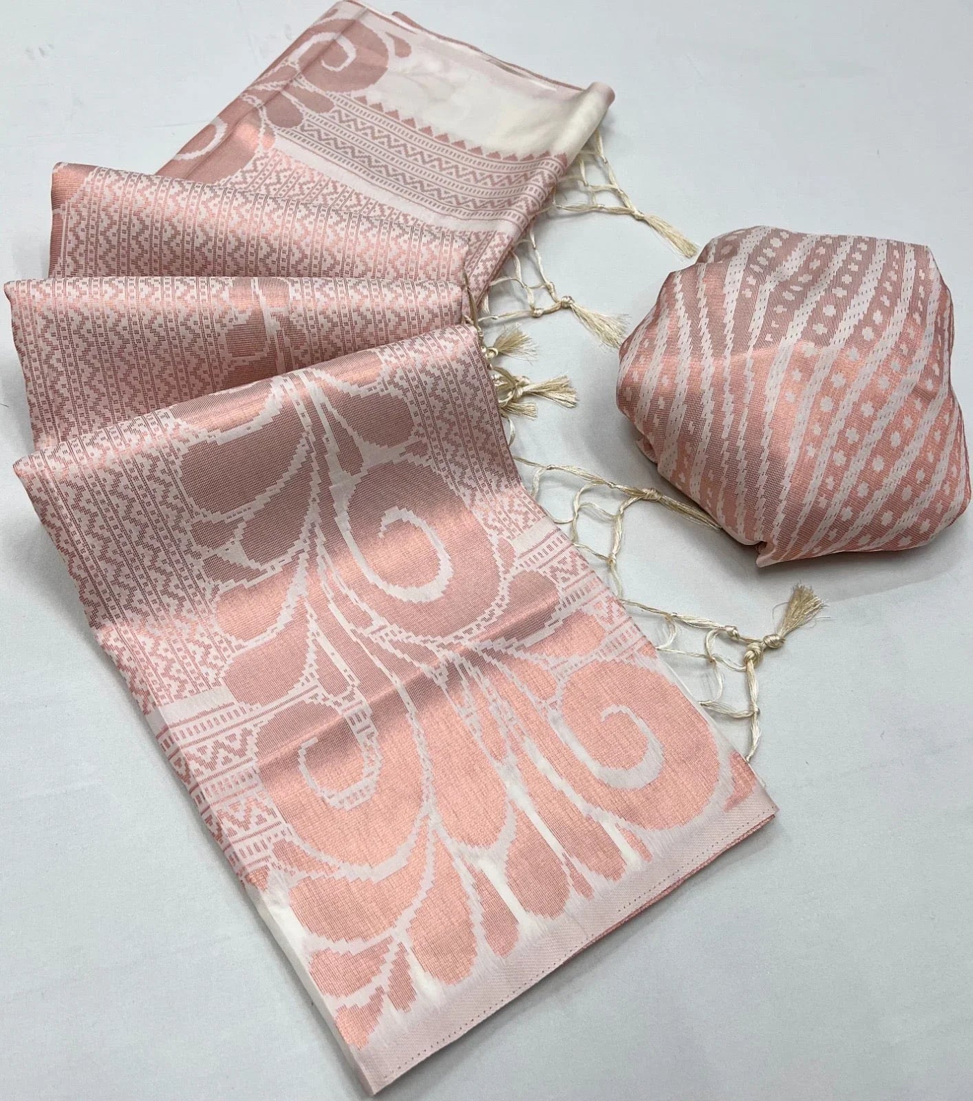 ब्लाउज पीस: हाँ, साड़ी 0.8 मीटर के रनिंग ब्लाउज पीस के साथ आती है जैसा कि छवि में दिखाया गया है