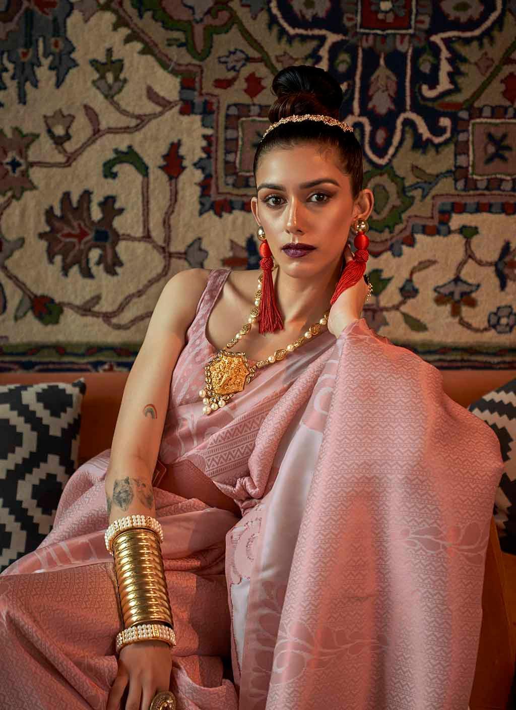 2. If you want to wash the saree at home, use cold water and shampoo, as detergents and brushes harm the beautiful saree.