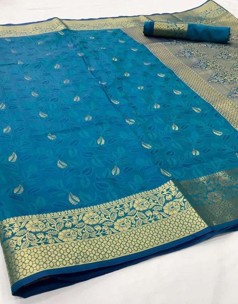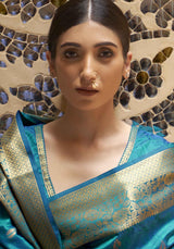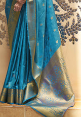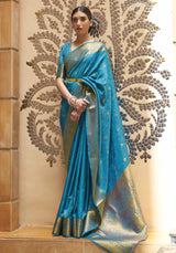 नियॉन नीली ज़री बुनी कांजीवरम सिल्क साड़ी