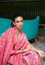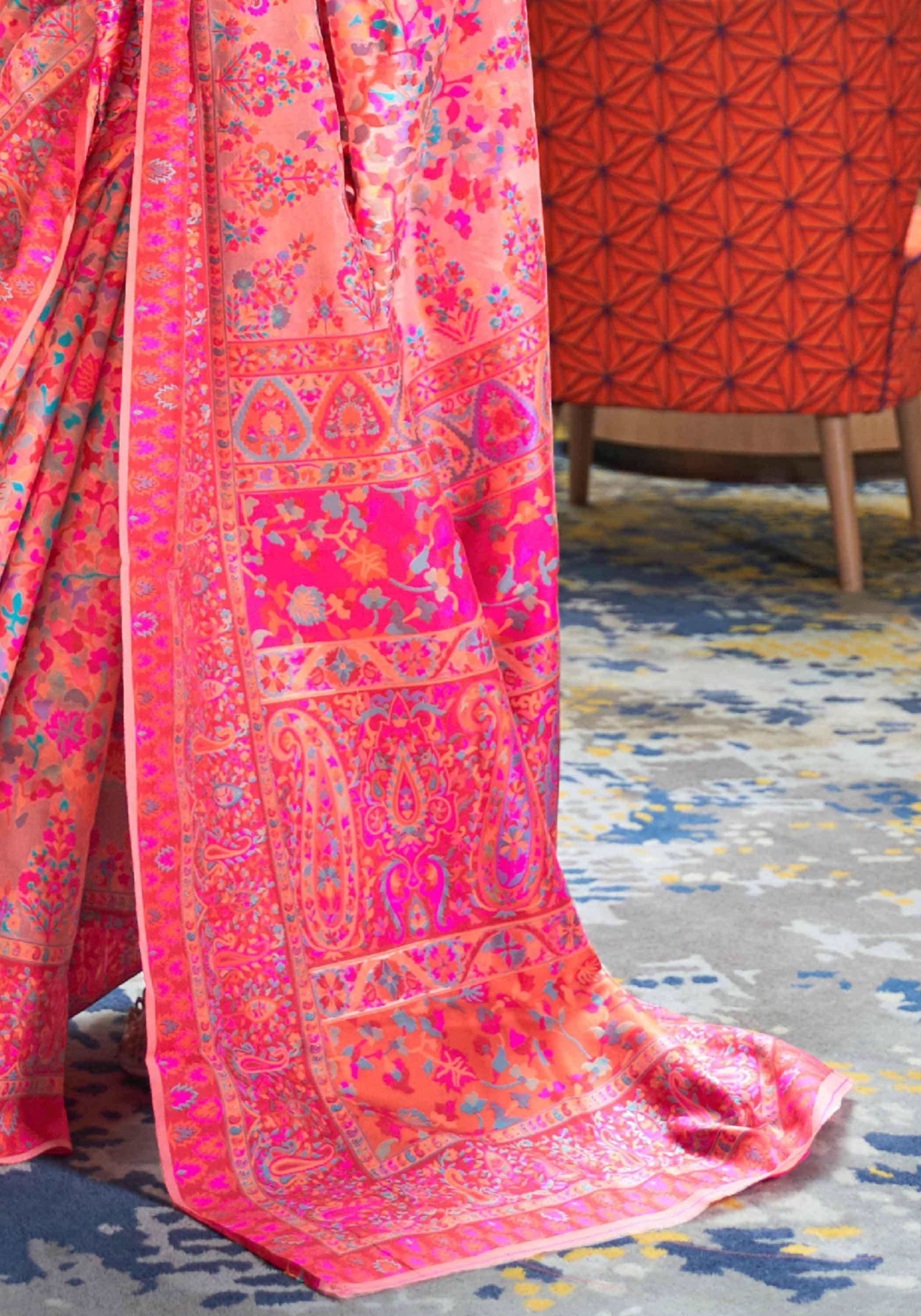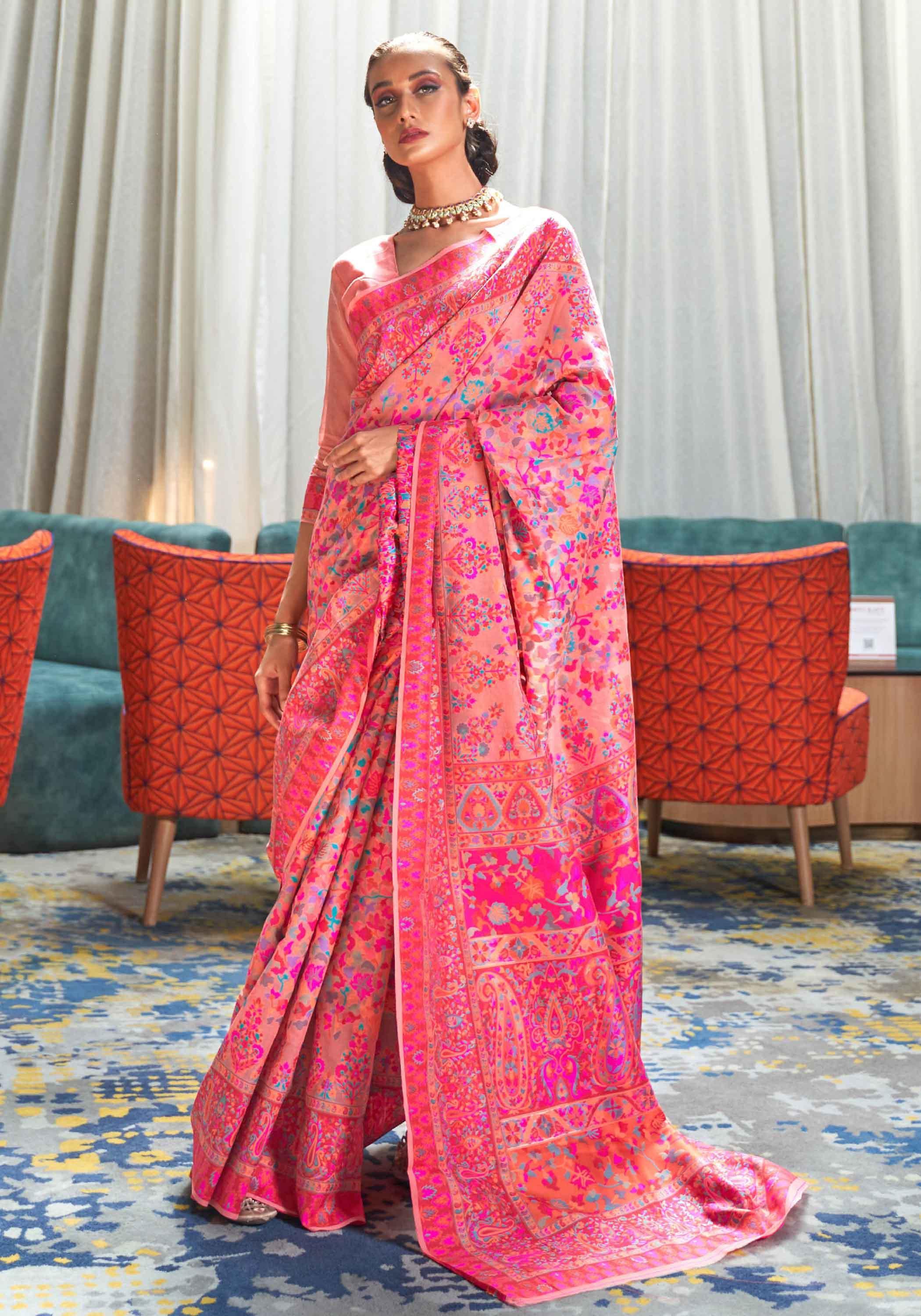रूज पिंक बनारसी जामावार बुनाई सिल्क साड़ी