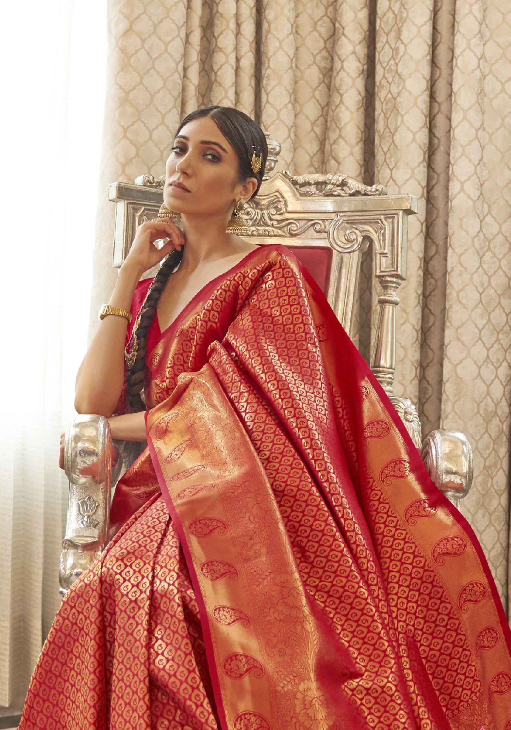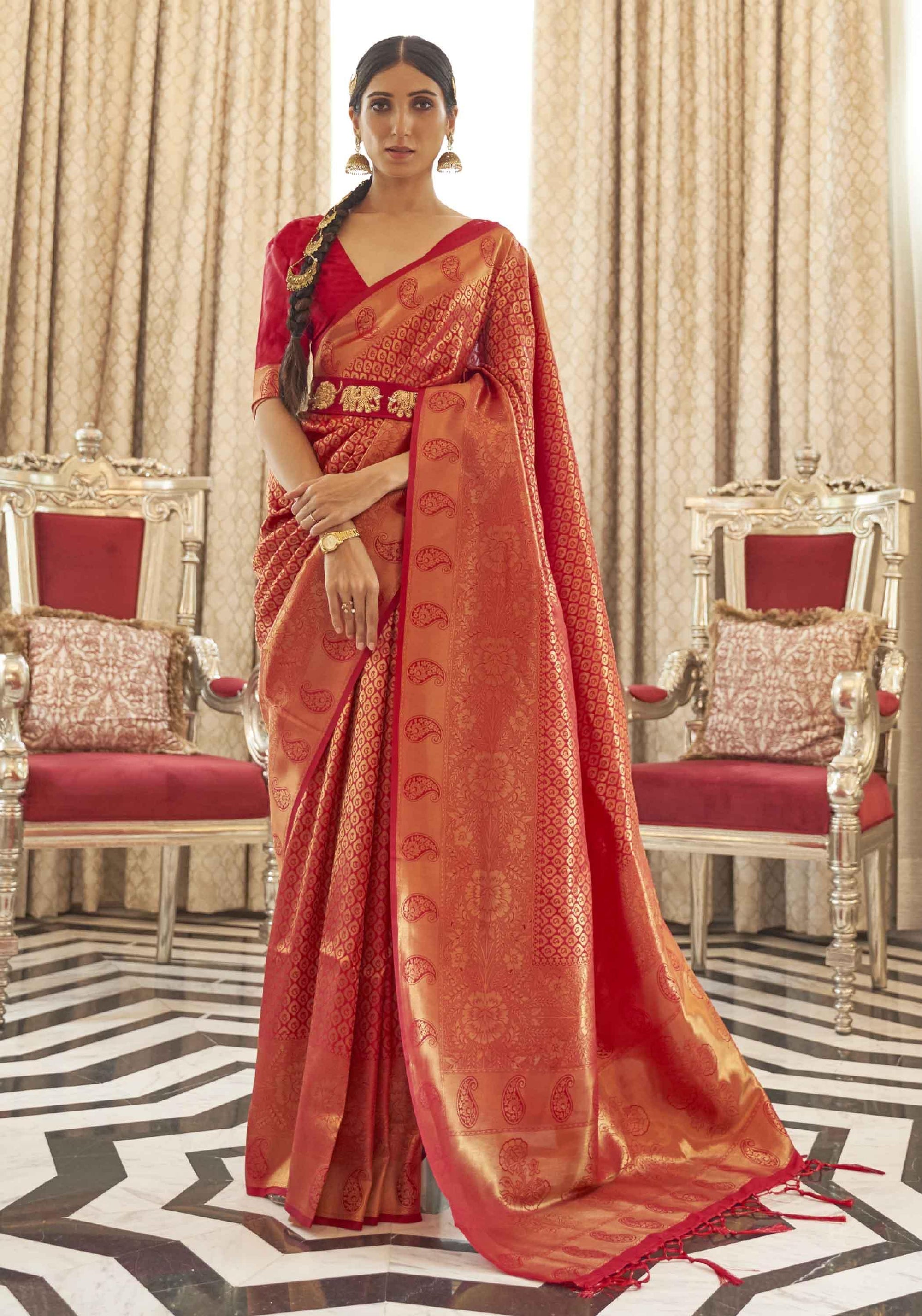 विनीशियन लाल ज़री बुनी कांजीवरम सिल्क साड़ी