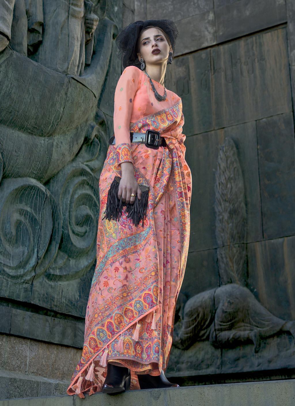 Saree Fabric : Organza Kashmiri Handloom Weaving