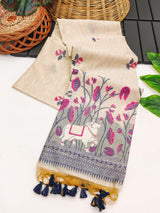 Fabric :- Soft Cotton Saree with colourful weaving, all over Resham weaving butties, classic colourful weaving pallu and fancy tassels.