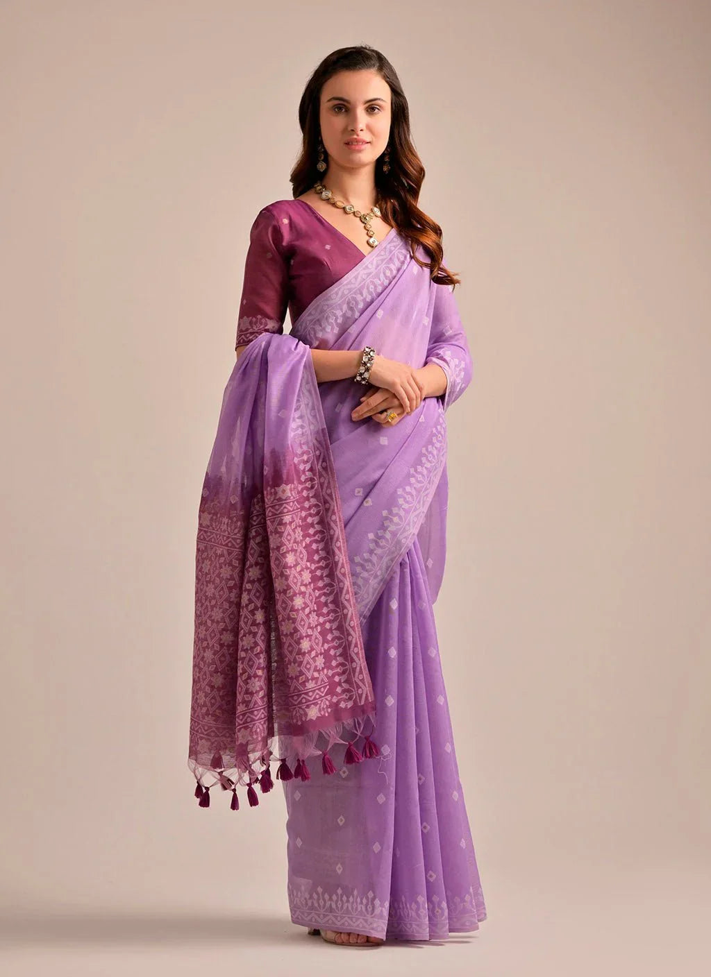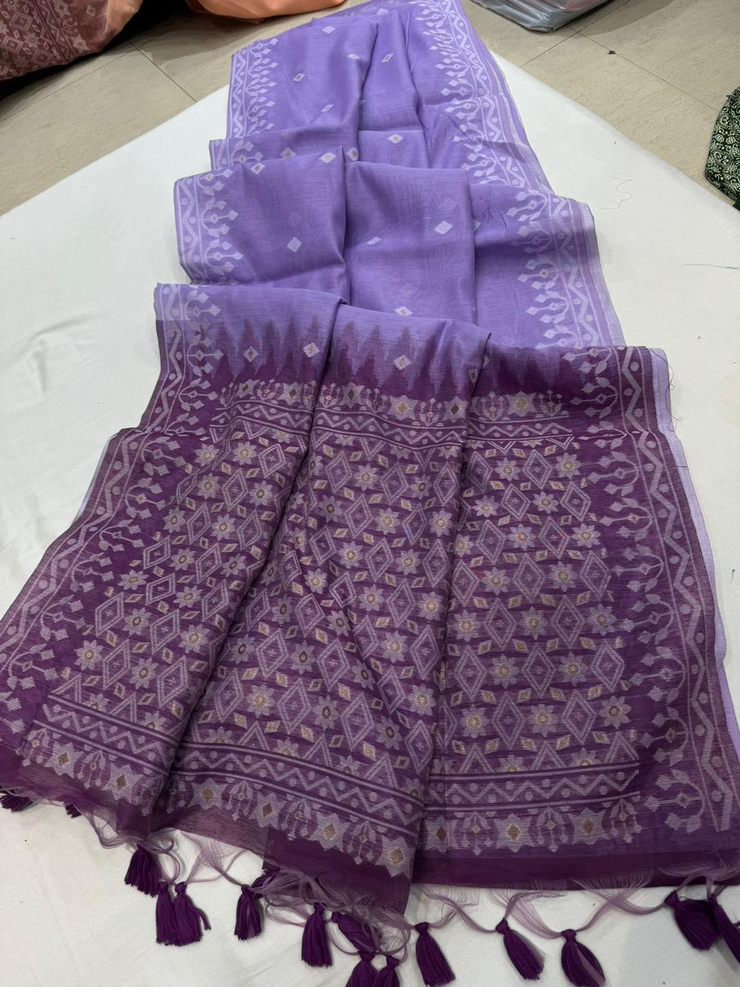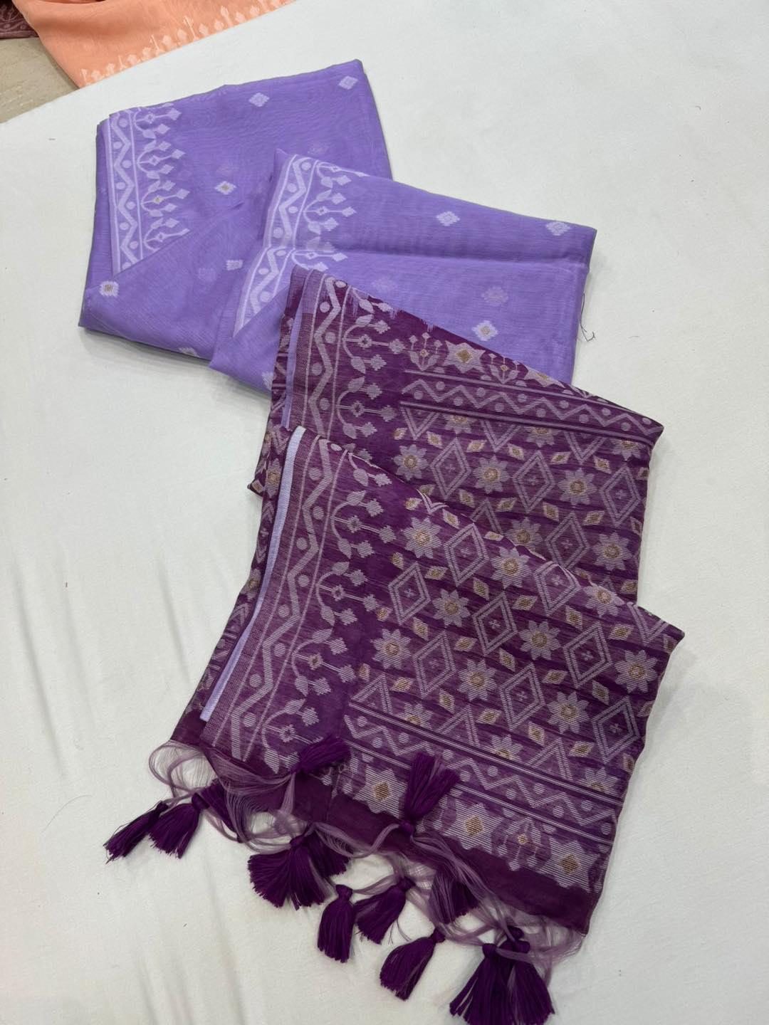 Fabric :- Premium Soft Cotton saree with classic colourful resham weaving pallu with all over resham weaving butties and fancy tassels